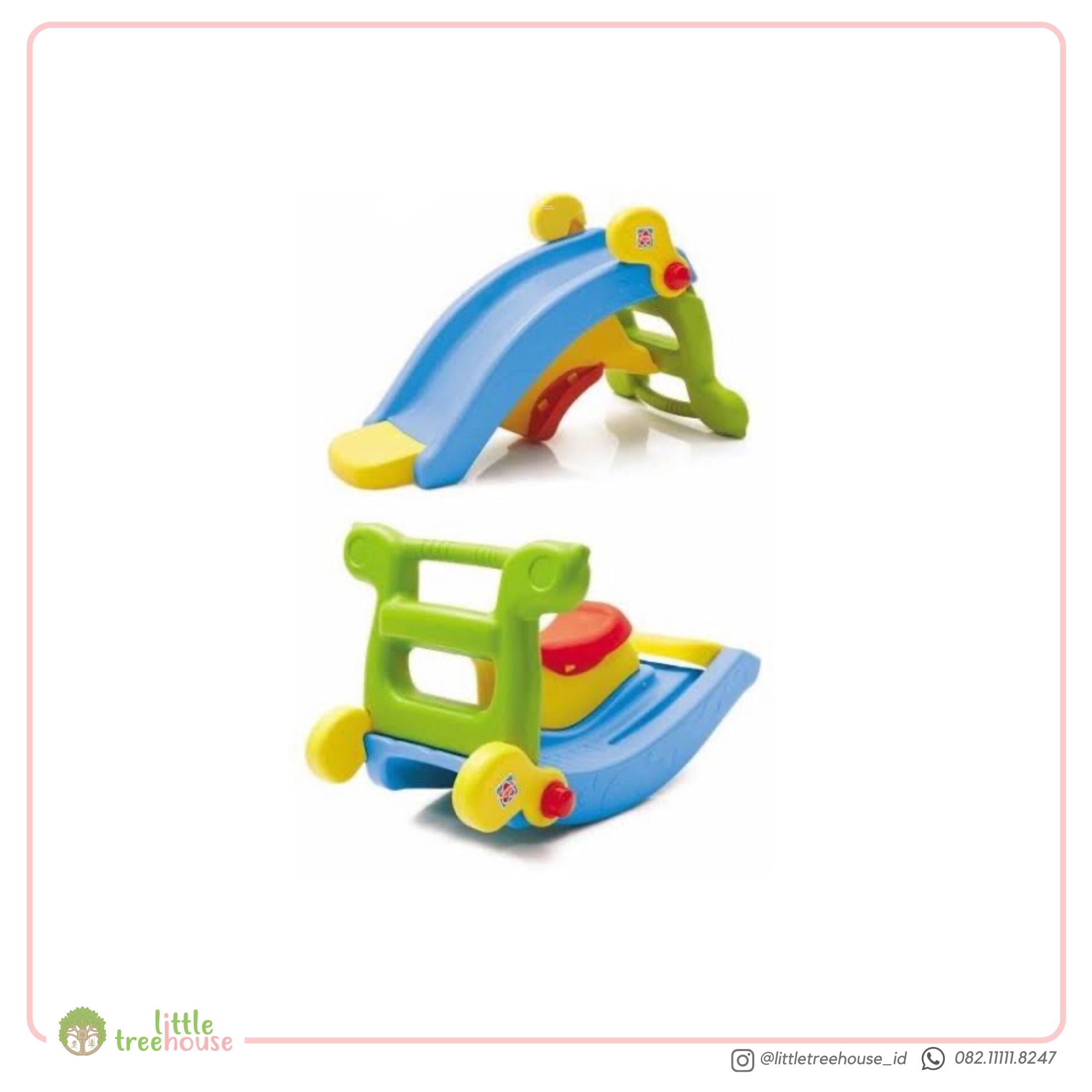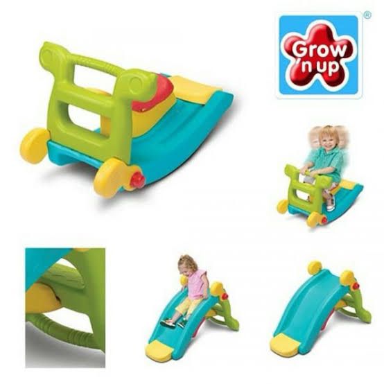 SLIDE ROCKER GROW N UP mainan Grow n Up ini memiliki 2 fungsi sekaligus, yaitu perosotan dan rocker! Perosotan dilengkapi dengan flat base agar pantat si kecil tidak langsung mengenai lantai. Ketika dibalik, perosotan ini berubah fungsi menjadi rocker yang dilengkapi dengan pegangan sehingga si kecil tetap dapat bermain dengan aman dan nyaman. Grow'n Up 2-in-1 Slide to Rocker dapat digunakan untuk anak usia 1-3 tahun max 23kg Dimensi : 90 cm x 50 cm x 52 cm (Slide mode); 75 cm x 50 cm x 52 cm (rocker mode) ❕INDOOR ONLY❕