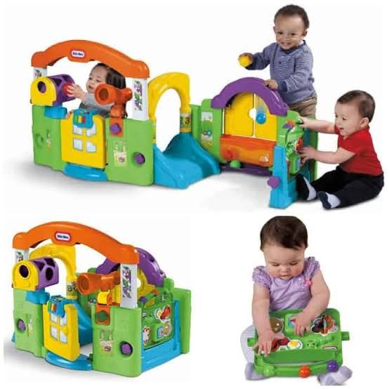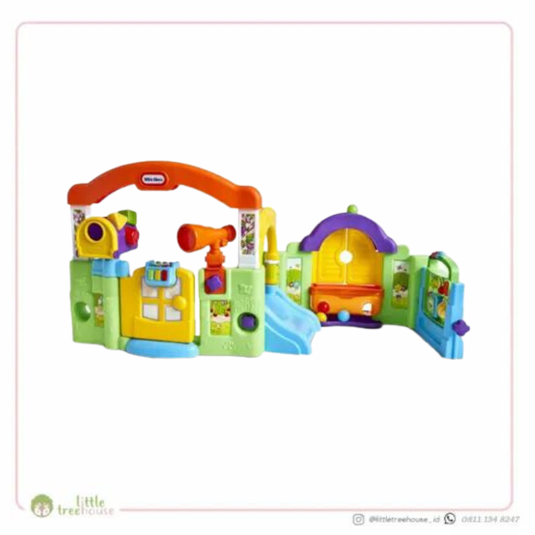 Little Tikes Activity Garden - menggabungkan berbagai mainan dan kegiatan untuk mengembangkan keterampilan motorik dan kemampuan kognitif bayi. Bayi akan menyukai warna menarik, bentuk dan tekstur dalam mainan ini. Dapat diubah dari satu permainan tertutup seperti rumah-rumahan, menjadi dua sisi permainan terbuka. Terdapat pintu yang melatih si kecil membuka dan menutup, atau perosotan mini yang dapat dilalui si kecil dengan merangkak atau meluncur. Dapat digunakan dari 6 bulan sampai 3 tahun.