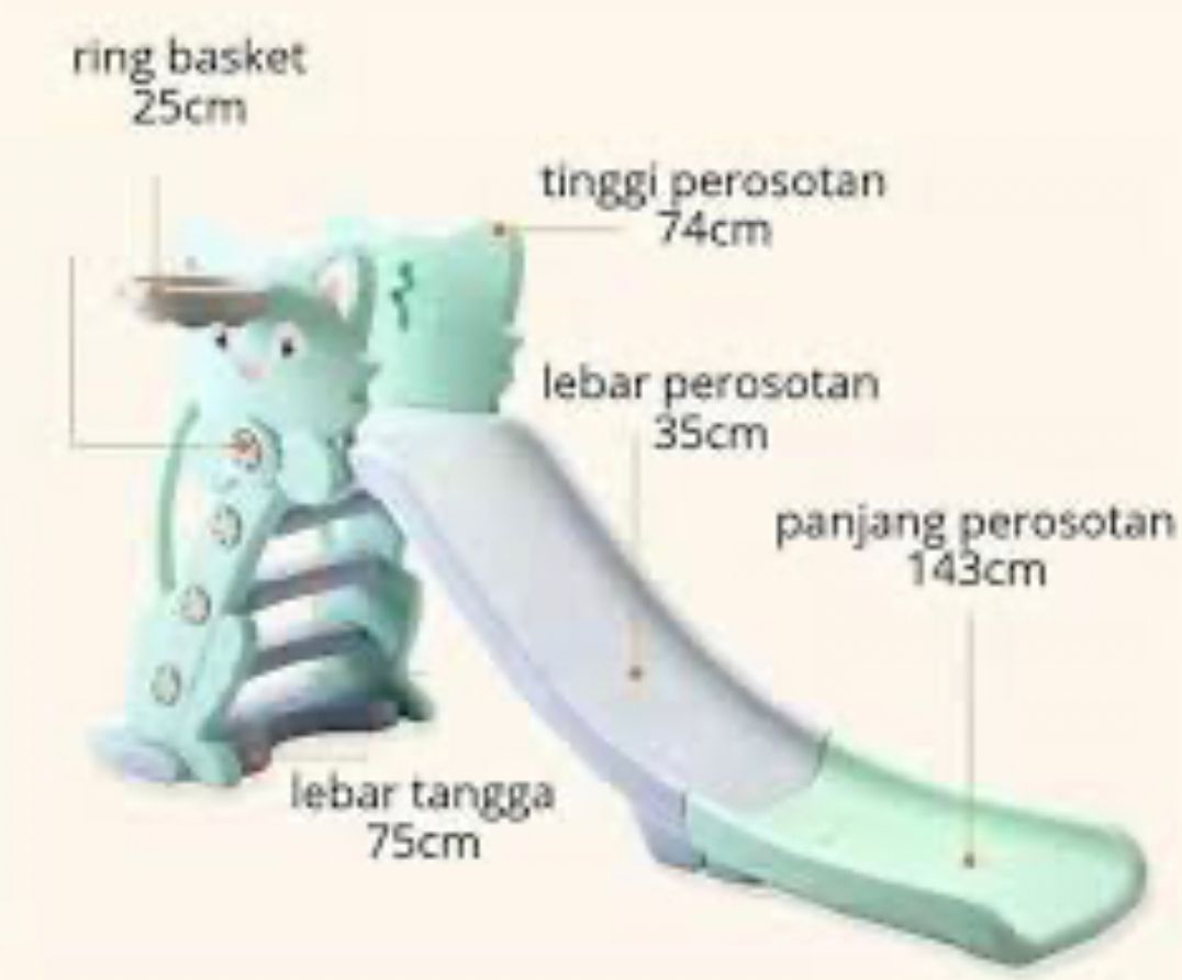 Parklon Slide tingginya yang pas untuk anak balita (dapat digunakan sejak anak usia 18 bulan). Dimensi produk : 160 × 40 × 86 cm Beban Maximum : 18kg Kelengkapan: 8 baut 1 baut ring ring INDOOR ONLY NOTE : TIDAK DISEWAKAN DENGAN BOLA
