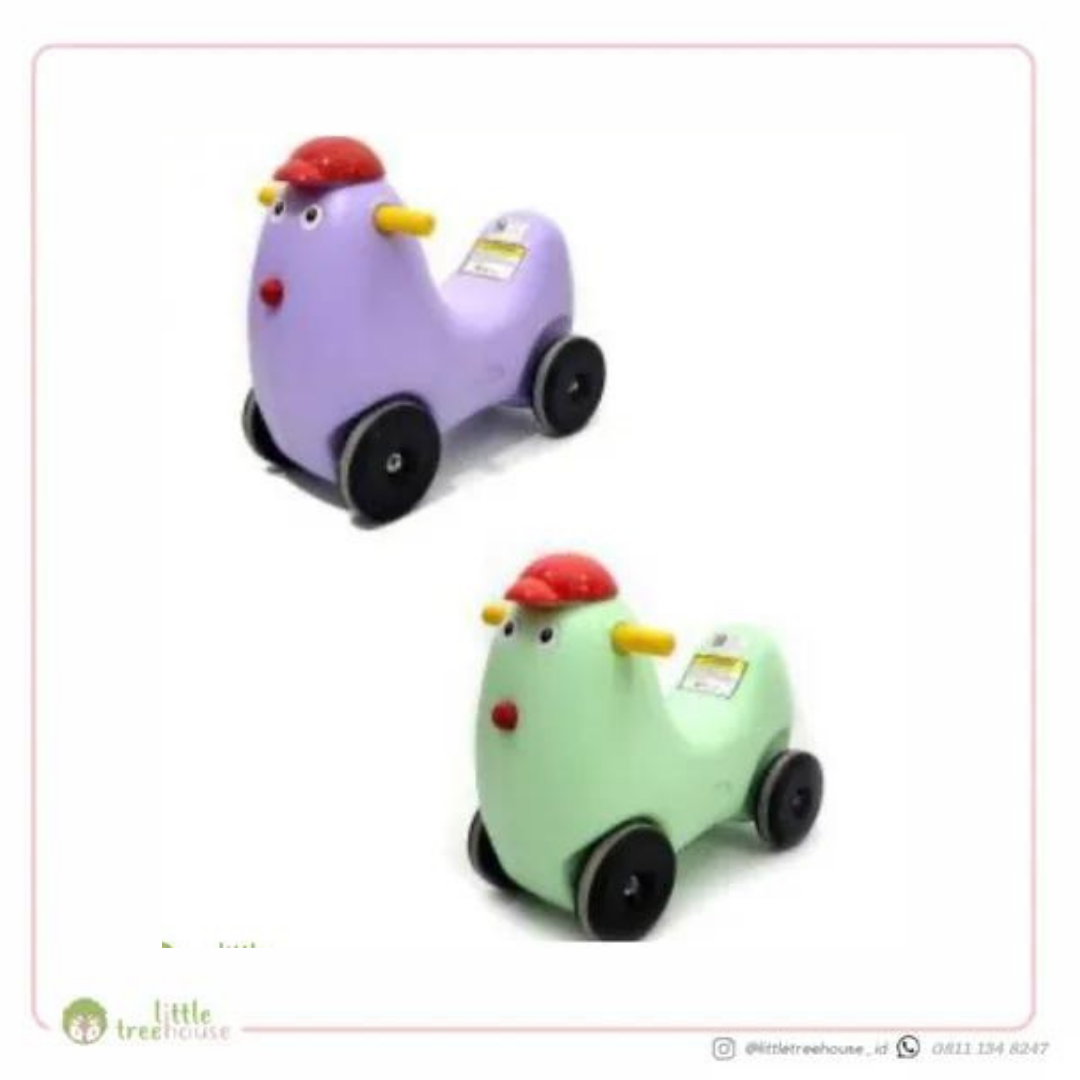 Chick Ride On Untuk Usia 1.5 tahun ke atas Berat maksimum Penggunaan 30 kg Ukuran barang : P52 x L30 x T42 cm Berat Produk 2.42 kg NOTE: TIDAK BISA PILIH WARNA
