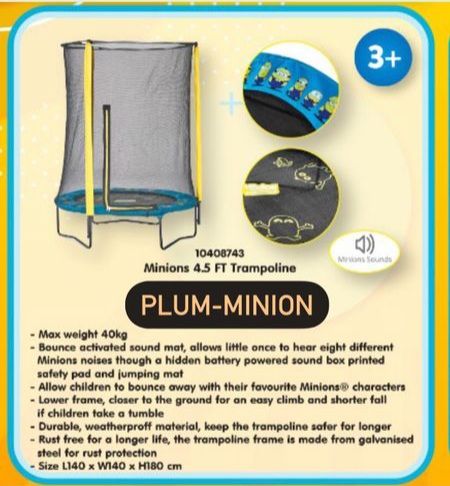 Permainan trampolin adalah seri permainan yang sangat mengasyikkan untuk dimainkan. Mainan ini sangat tepat digunakan untuk mengenalkan trampoline sejak dini pada si kecil. Dimensi 140x140x180 cm Beban Maximal 40 kg Terdapat Sound Effect Suara MInion https://www.youtube.com/watch?v=L75Fk8bLLQY 🔺INDOOR ONLY🔺