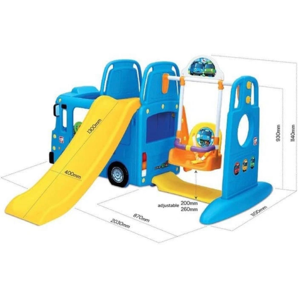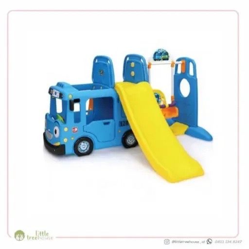 Beep beep let’s climb aboard Tayo the Little Bus and play with the happiest little bus. When you get to your bus stop don’t just get off the bus, slide down the bus! Or you can use the bus like a playhouse and play inside with all your friends. It’s a playhouse shaped like Tayo the Little Bus with a fun slide! MORE INFO Includes a playground set in the shape of Tayo the Little Bus with slide, swings, playhouse, and pretend driver’s seat With lights and sounds Door on both sides can be opened and closed Detachable bus seat Non-slip safety embossing stairs Recommended age for play zone : 2 Years old and up Product Dimensions: see picture NOTE: TIDAK MENYEDIAKAN BATRAI BARU