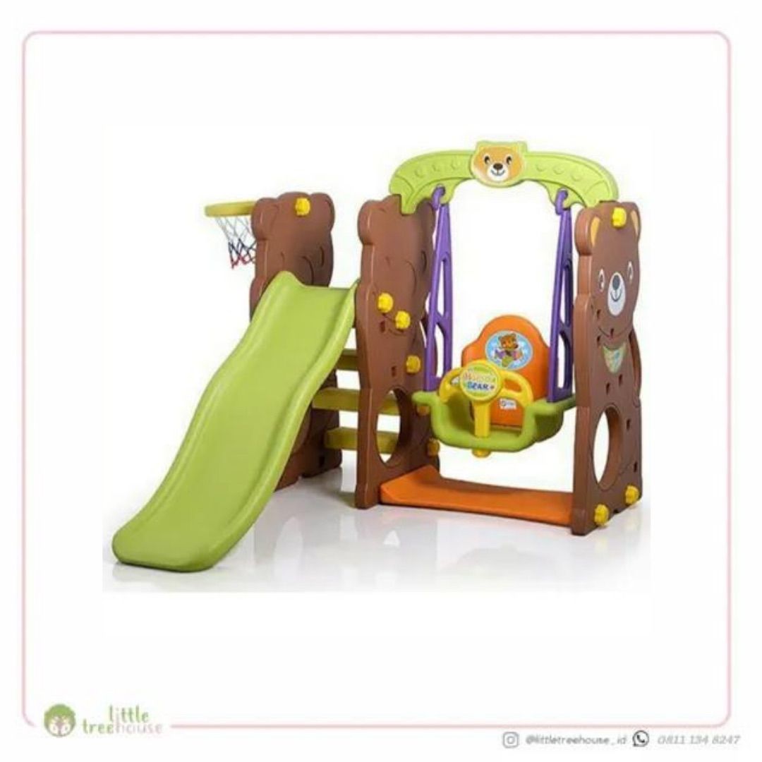 MAINAN PLAYGROUND – TOBEBE DINO / BEAR JUMBO SLIDE WITH SWING CHD-171 HANYA UNTUK PEMAKAIAN INDOOR – TIDAK UTK OUTDOOR YG KENA HUJAN/PANAS/TANAH adalah mainan perosotan ayunan, sempurna untuk menemani waktu bermain buah hati anda. Dino/Bear Jumbo Slide with Sling CHD-171 ini hadir dengan design dinosaurus lucu dan warna tropis. Bahan yang tidak beracun aman untuk anak anak dan kokoh, tangga anti slip dan lebar, pegangan yang mudah di genggam sibuah hati dan perosotan berbentuk gelombang akan mendukung keamanan si buah hati ketika bermain. Fitur : # Perosotan dan ayunan yang menyenangkan si buah hati. # Design dinosaurus yang cerah. # Pegangan yang mudah di genggam dan Perosotan bergelombang yang akan menambah keamanan dan kesenangan dalam bermain. # Design yang kokoh # Penginstalan yang mudah dengan menggunakan cap nut. # Ring basket untuk aktifitas olahraga si buah hati. Dimensi Produk : 161 cm x160 cm x 125 cm Anak Usia : 2-5 tahun Kelengkapan: 19 baut ring Kapasitas berat : 20kg