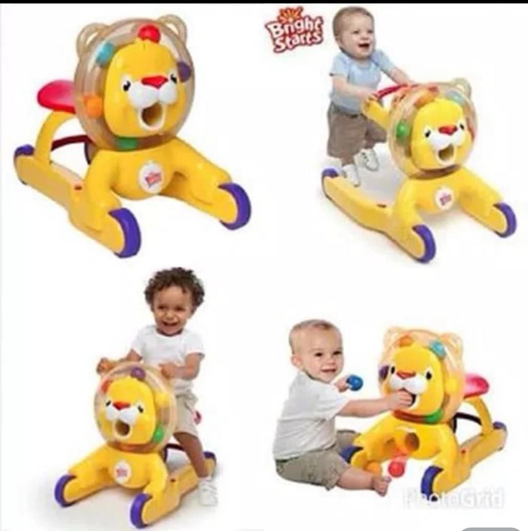 Bright starts mempersembahkan 3in1 step ride on lion, mainan multifungsi sangat berguna menemani tahap masa kembang balita dimulai dari kegiatan duduk dilantai, berdiri, berjalan dan bermain ride on. Ajak sikecil menunjukkan cara duduk dan memberi makan bola berwarna cerah ke mulut singa yang lapar. Buka tutup kecil di sepanjang perut singa untuk memulai kesenangan lagi! Cobalah menepuk hidung untuk mendengar raungan tawa saat bola warna-warni berputar dan di sekitar surai singa. Ketika bayi telah menguasai kegiatan duduk dan bermain, mainan bayi berubah menjadi mainan belajar berjalan! Amati sikecil saat mendorong singa, bola berputar dengan tawa, gerakan mengaktifkan melodi dan suara yang menyenangkan. Ketika sikecil sudah dapat berjalan sendiri, singa berubah menjadi mainan ride on (mengendarai singa), wah sangat menyenangkan! Detail Product: -Bersiaplah untuk mendengar singa mengaum dengan tawa -3 mode permainan: duduk, berjalan, atau mengendarai -Permainan memberi makan singa dengan bola warna-warni -Bola berputar mengelilingi surai singa -Cahaya, Suara & Lagu -Baterai Diperlukan NOTE: TIDAK DISERTAKAN BATERAI BARU