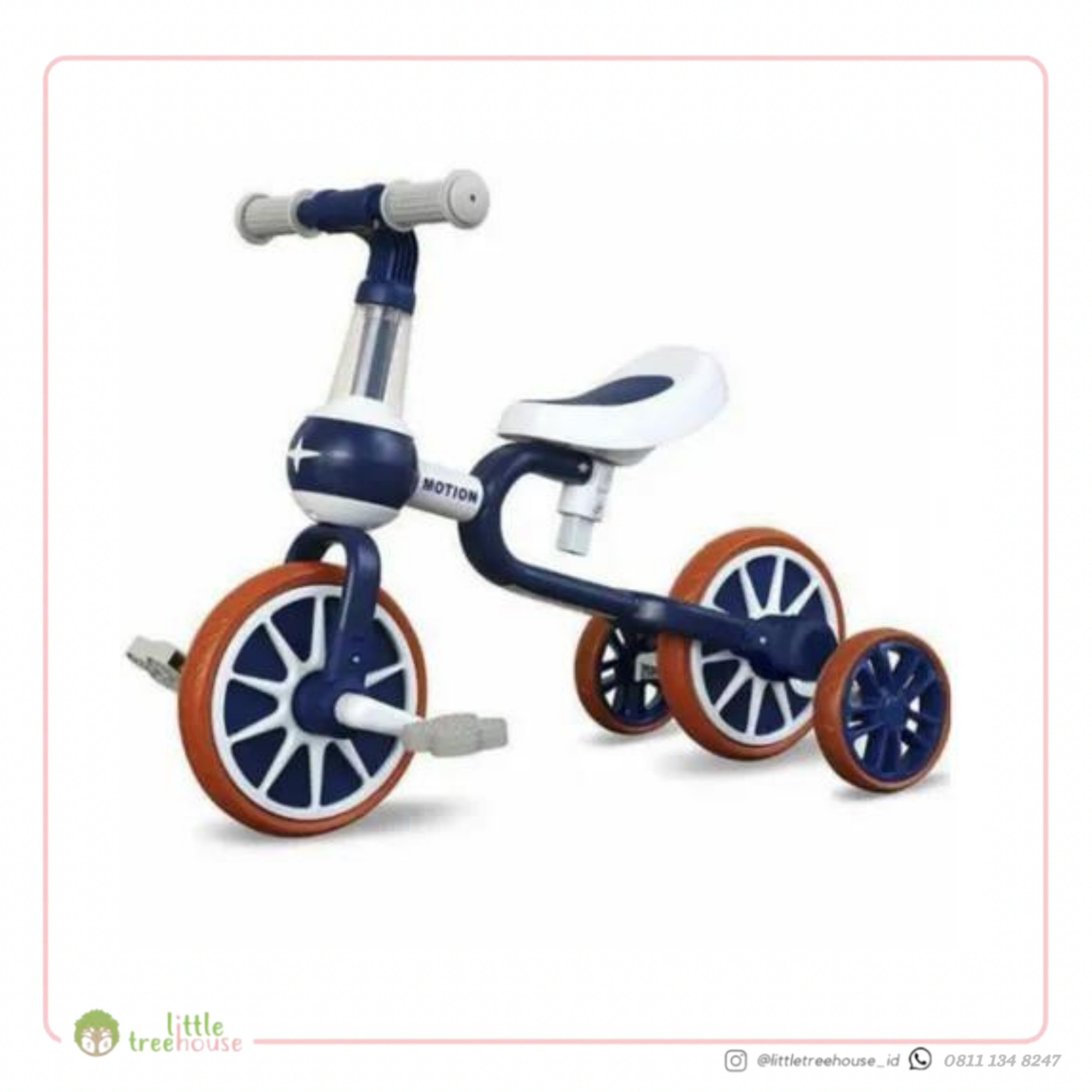 Motion Bike Tricycle Gen 2 Bisa roda 3 Bisa balance bike Bisa sepeda roda 2 ( ada pedal) Bisa lepas pasang MUDAH DIPASANG Tinggi sepeda Tinggi jok duduk 33 cm ( bisa diatur 3-4cm) Tinggi stang ( tidak bisa di atur tinggi) dari tempat duduk ke stang 25cm berat sepeda 3.5kg bisa untuk bb max 20kg NOTE: WARNA SESUAI KESEDIAAN