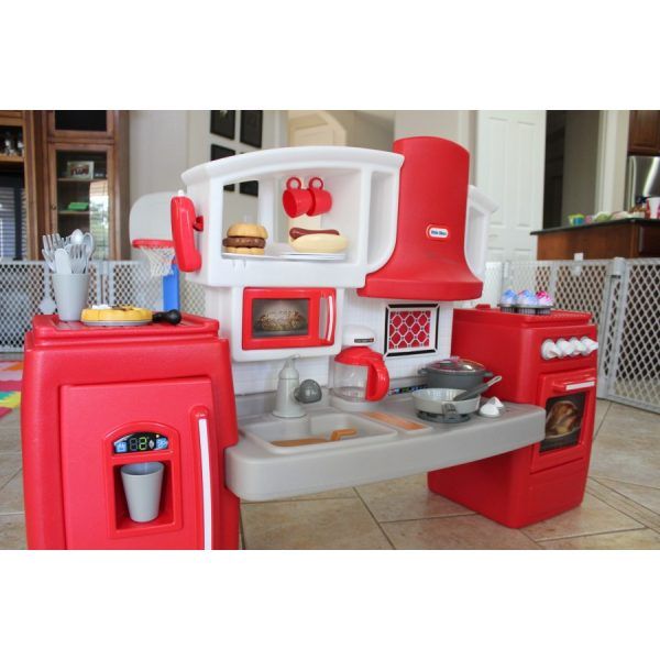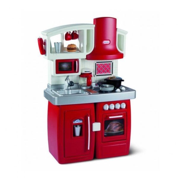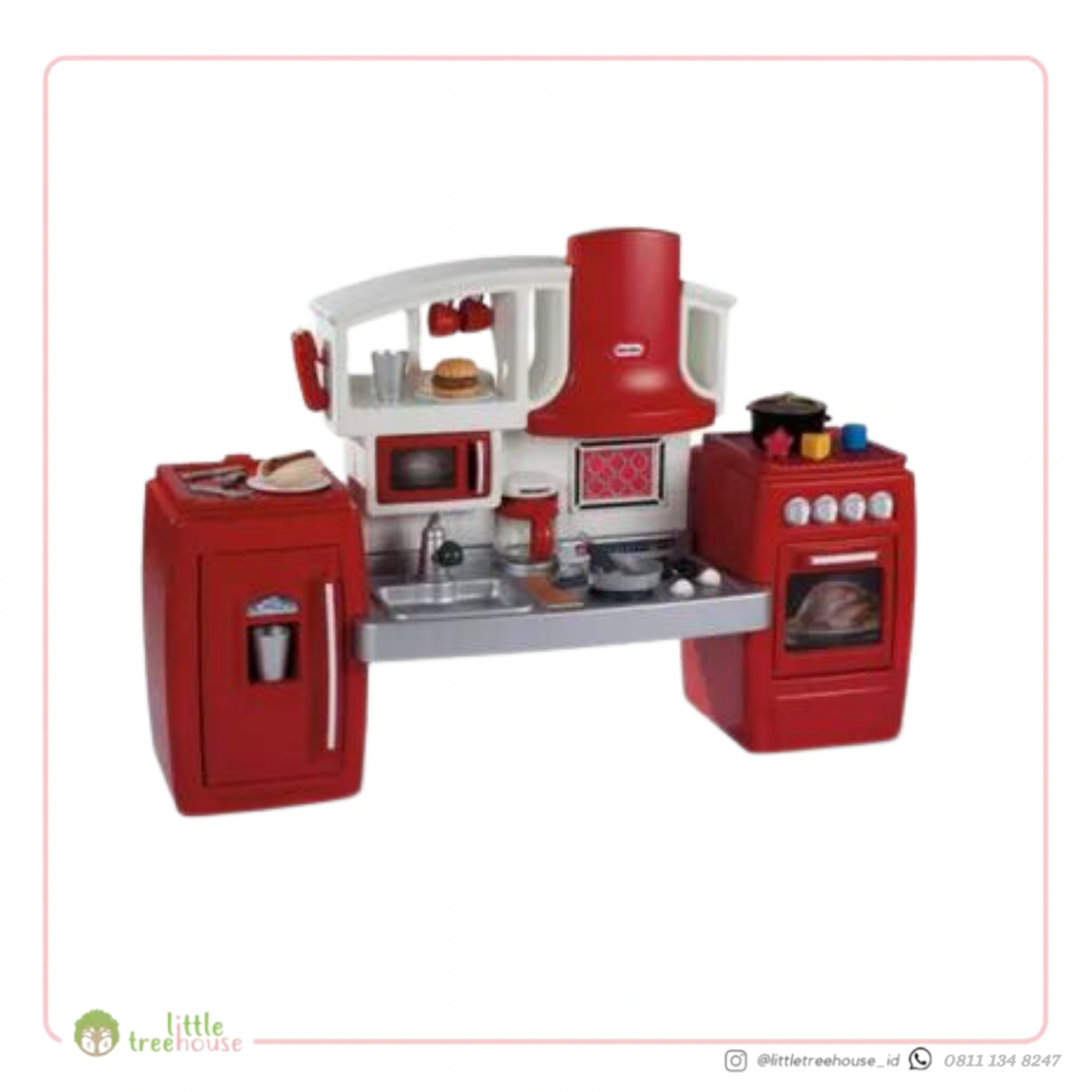 Little Tikes – Cook N Grow Kitchen Perkenalkan anak Anda ke dapur modern dan berikan inspirasi kepada koki kecil dengan Little Tikes Cook ‘n Grow Kitchen. Anak-anak berusia 18 bulan ke atas dapat belajar tentang makanan sambil berpura-pura memasak. Pintu microwave, oven, dan lemari es dapat dibuka dan tutup. Suara memasak elektronik memberikan realisme. Dapur termasuk 26 aksesori, terdiri dari mainan makanan, peralatan dapur, peralatan masak, dan gelas serta piring. Dapur bisa disesuaikan agar sesuai dengan tinggi badan anak Anda. Dua Konfigurasi Tinggi Mengakomodasi Usia yang Berbeda Ketika dapur diperluas, wastafel berada di antara lemari es dan oven, menjadikannya tempat yang sempurna untuk balita. Anda juga dapat mengkonfigurasi dapur sehingga wastafel berada di atas oven dan kulkas, membuatnya lebih tepat untuk anak prasekolah yang lebih tinggi dan ukuran yang kompak. Aksesoris Makanan dan Dapur Dapur termasuk berbagai aksesoris bermain, termasuk berbagai mainan makanan, penggorengan, spatula, cangkir, dan banyak lagi. Ada bentuk penyortiran bentuk untuk pot dan tiga blok bentuk untuk belajar tentang bentuk dan warna. Fitur Dapur dapat dikonfigurasi 2 bentuk mengikuti usia anak Tahap 1 memperkenalkan anak-anak prasekolah ke dapur bermain di ketinggian yang tepat, dan Tahap 2 memperkenalkan anak-anak batita dalam bermain peran dapur dapuran Pintu oven, kulkas, dan microwave yang berfungsi secara nyata Suara memasak elektronik Kait dan slot yang dibentuk memegang gelas dan piring Pot pemilahan bentuk dengan penutup membantu mengembangkan keterampilan motorik anak yang lebih kecil Termasuk 26 aksesori untuk bermain kreatif dan imajinatif Anak Usia: 18 bulan keatas INDOOR ONLY