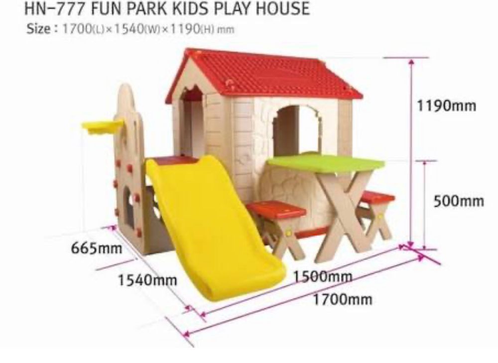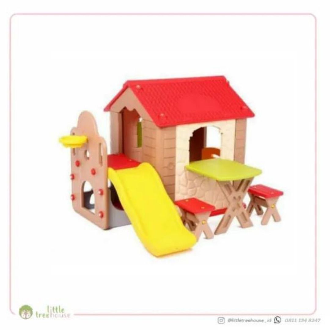 Haenim Fun Park Kids Play House akan menciptakan suasana yang menyenangkan dan memberi kebahagiaan bagi anak-anak. Mainan rumah-rumahan yang dilengkapi dengan banyak fitur bermain yang menyenangkan dan realistis seperti; slide, memanjat dan bersembunyi, ring basket, juga dilengkapi dengan pintu, jendela yang dapat dibuka tutup, meja piknik dan 2 bangku, semuanya lengkap dalam satu set. -Slide yang lebar dan bergelombang untuk meluncur lembut -Climber yang mudah dipanjat oleh anak-anak dengan aman -Bermain sembunyi -Ring basket (bola tidak termasuk) -Fun playhouse dengan desain dinding realistis -Meja piknik dan 2 kursi -Fitur realistis, pintu, dan jendela yang dapat dibuka tutup -Semua sudut dibulatkan sehingga jika anak terjatuh disudut, dia tidak terluka Anak Usia: 2 – 5 Tahun ❕INDOOR ONLY❕