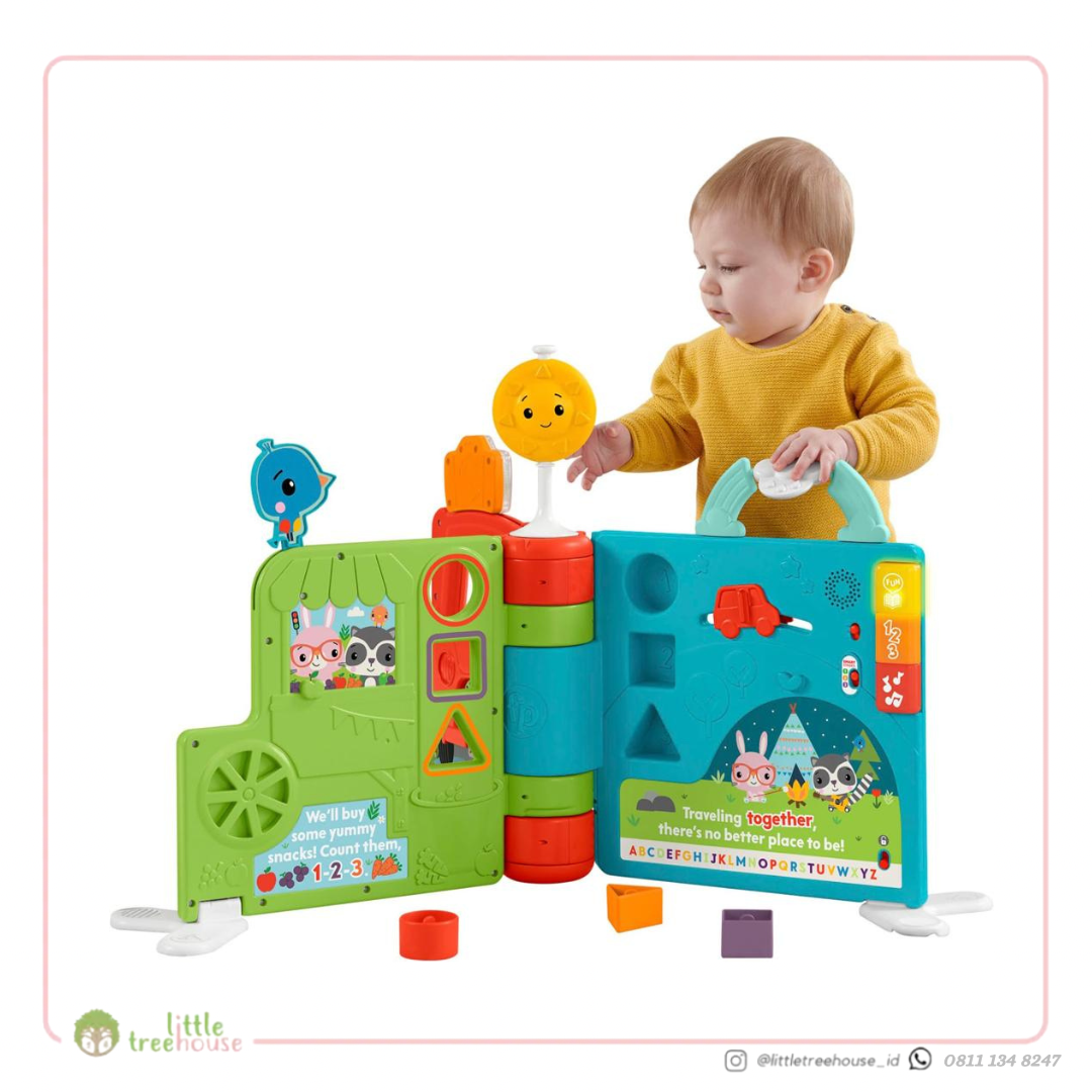 Ages: 636 months Fisher-Price Sit-to-Stand Giant Activity Book adalah mainan pembelajaran elektronik 2-in-1 yang dapat berubah dari buku cerita datar menjadi pusat aktivitas yang kokoh dan tegak dengan permainan 360 derajat untuk dijelajahi si Kecil saat mereka tumbuh duduk hingga merangkak dan berjalan-jalan. Saat si kecil menekan tombol menyala yg ada di samping, konten pembelajaran Smart Stages® akan memperkenalkan alfabet, angka, warna, dan lainnya. Ruang bermain yang menarik ini memiliki 8 aktivitas menarik untuk membuat tangan kecil tetap sibuk, termasuk penyortiran bentuk, pemintal, dan banyak lagi. Mainan pembelajaran elektronik 2-in-1 yang dapat berubah dari buku cerita duduk menjadi pusat aktivitas yang kokoh dan tegak dengan permainan 360 derajat - 3 Level pembelajaran Smart Stages® mengajarkan alfabet, keterampilan literasi awal, angka dan berhitung, bentuk, dan warna Level 1 Jelajahi/ explore: Bayi dapat memulai perjalanan buku cerita mereka dengan lagu dan frasa yang memperkenalkan warna, alfabet, angka, bentuk, dan kata pertama. Level 2 Mendorong/ encourage: Petunjuk menyenangkan membantu balita menghitung 1-20, bernyanyi tentang bentuk, mendengar tentang warna, dan menemukan penumpang gelap kecil yang lucu bersembunyi di dalam