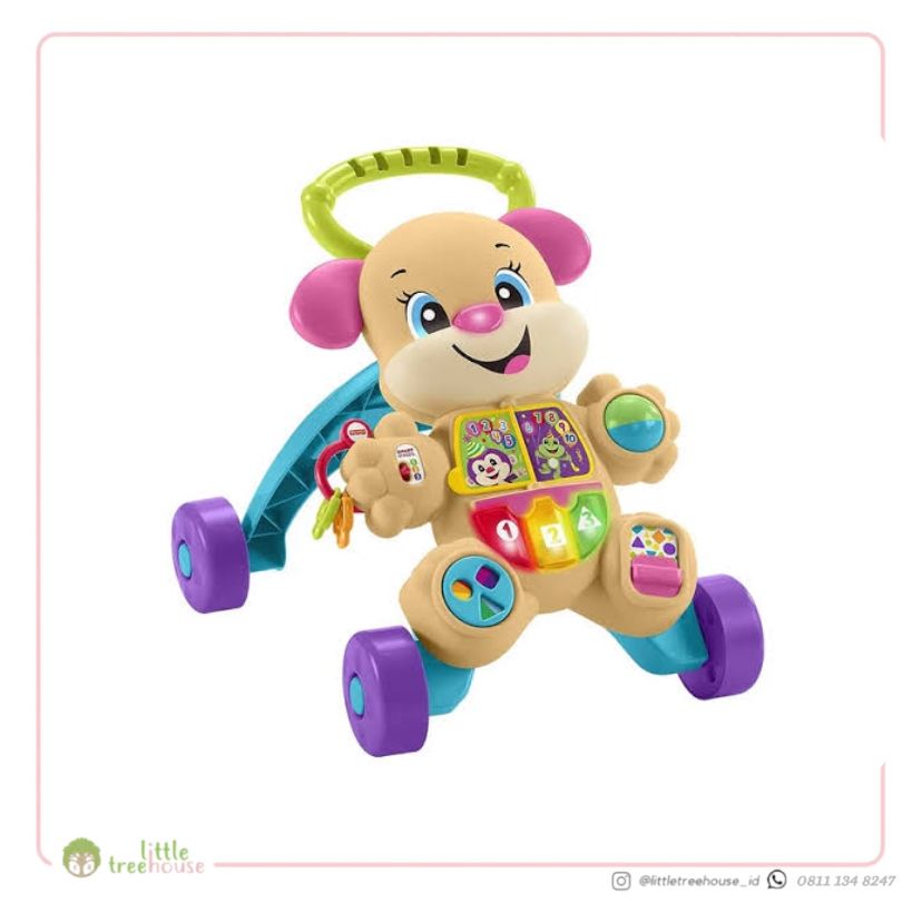 Sobat berjalan ini membantu menstabilkan langkah pertama bayi dan memperkenalkan warna, bentuk, angka, dan banyak lagi! Ketika anak-anak kecil tumbuh dan pergi, Puppy akan memperkenalkan mereka pada alfabet, bentuk, warna, penghitungan, dan bahkan kata-kata Spanyol! Di mana perkembangan muncul, bermain Akademik: Lagu dan frasa yang menyenangkan memperkenalkan bayi kamu ke alfabet, warna, angka, kata-kata Spanyol, dan banyak lagi! Motorik Kotor: Otot-otot kecil mendapatkan latihan besar ketika anak-anak yang duduk meraih dan berinteraksi dengan aktivitas dan kemudian menariknya untuk berdiri dan berjalan di belakang walker.Â
