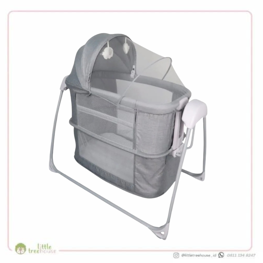 COCOLATTE | Auto Sway Sidebed with Bluetooth menawarkan kemudahan dengan 3 mode penggunaan: Bassinet, Bedside Sleeper, dan Crib Option. Dilengkapi dengan Auto Sway Mode untuk meniru gerakan mengayun lembut lengan ibu, kanopi bermainan gantung dengan jaring anti nyamuk, panel kontrol Gentle Touch, remote control dan Bluetooth, serta 5 kecepatan ayunan, stroller ini dirancang untuk memberikan kenyamanan dan keamanan yang tak tertandingi bagi bayi Anda, dilengkapi dengan roda yang dapat dikunci dan cradle yang bisa dilepas serta rangka yang dapat dilipat untuk kemudahan dan kepraktisan maksimal.