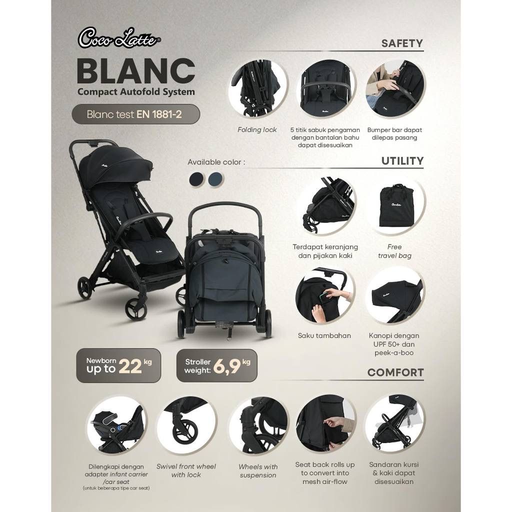 - Dapat digunakan dari bayi baru lahir sampai 22 kg.