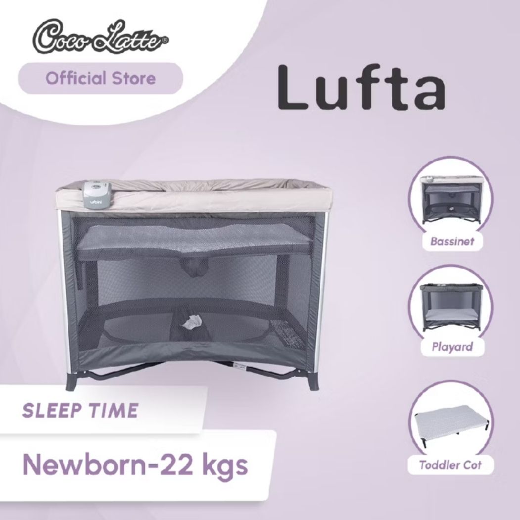 Letβs get relax Mom&Dad! Cocolatte Lufta- The 1st Newborn playard with Toddler Bed. Mom&Dad can give an incredibly safe space for your baby.