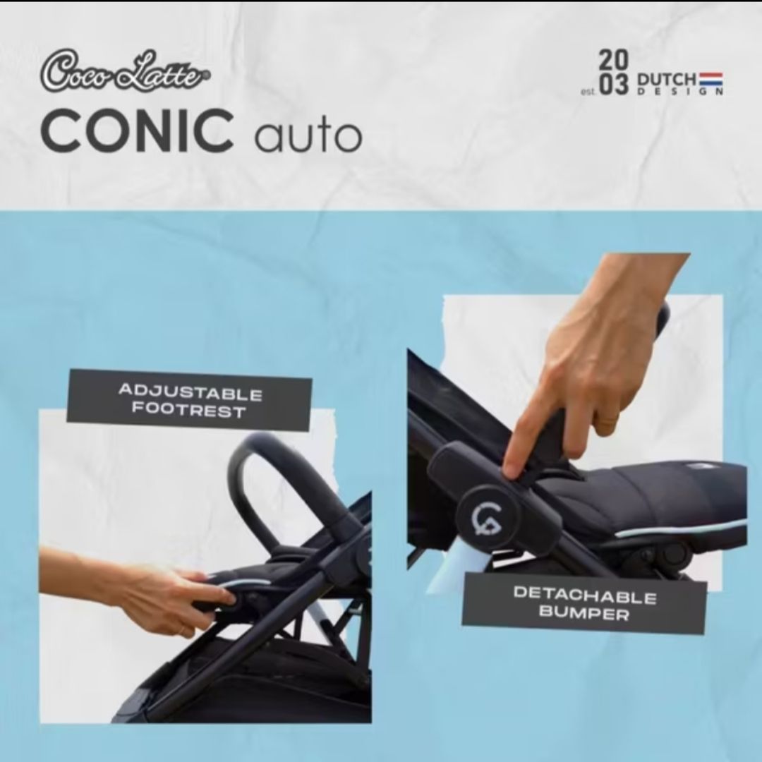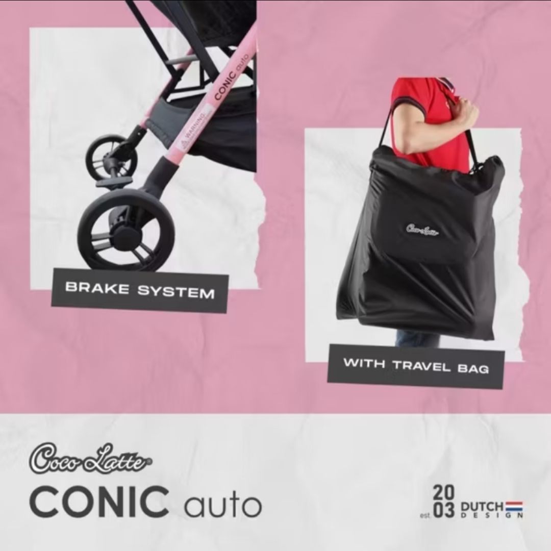 COCOLATTE | Conic Auto Stroller memberikan kemudahan kepada moms & dads dalam membawa si kecil dengan stroller. Roda yang berputar penuh pada Conic Auto sangat berfungsi saat membawa si kecil di tempat keramaian, seperti masuk ke dalam lift. Tidak perlu repot untuk memutar stroller karena sudah dilengkapi dengan “360° swivel front wheels”.