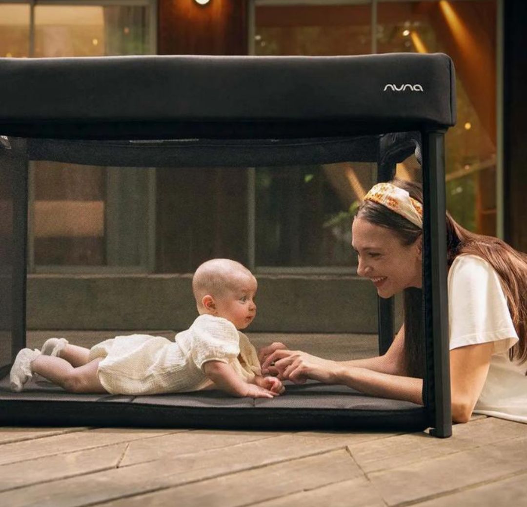 Panel samping dengan ritsleting untuk kesenangan merangkak dan interaksi tatap muka dengan bayi