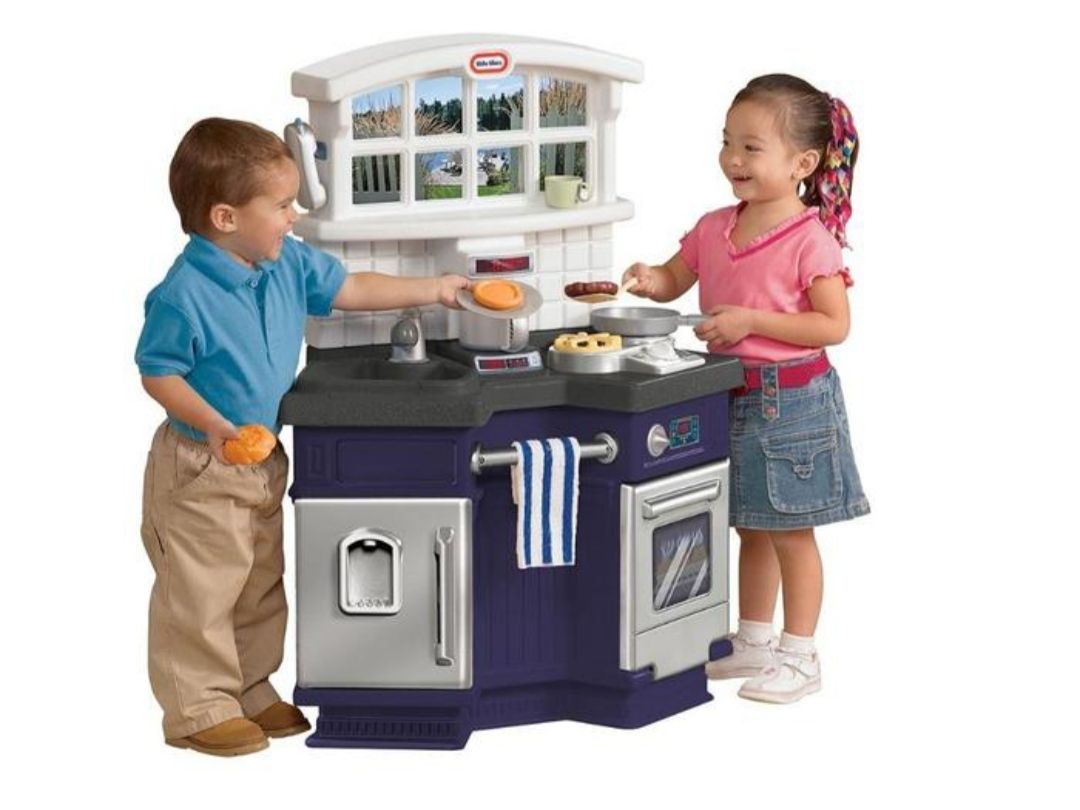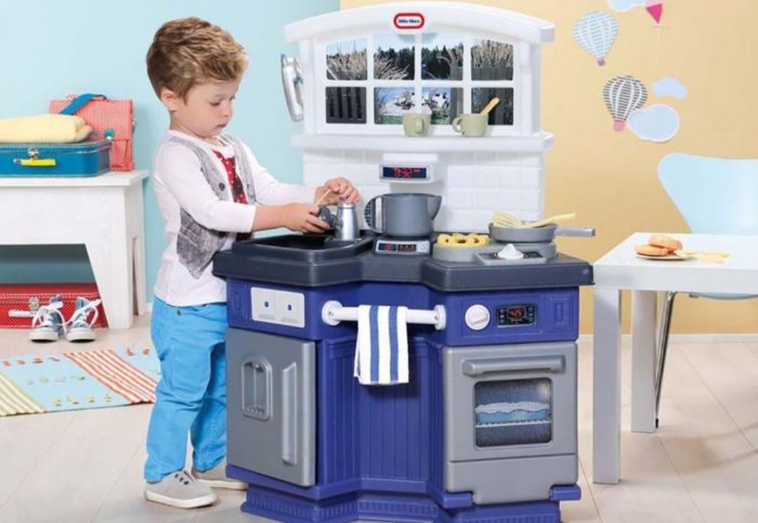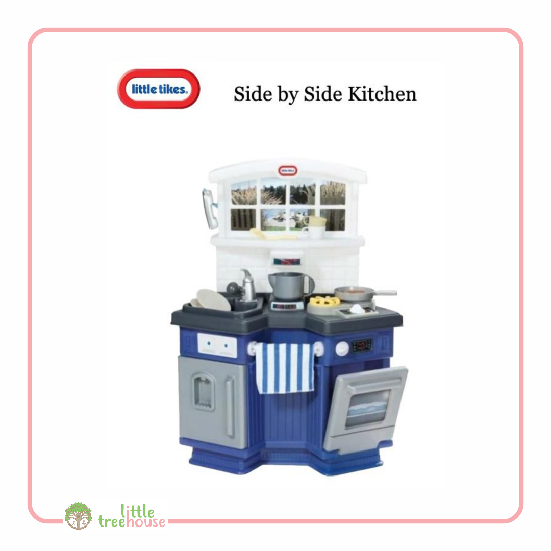 Children will have great roleplay fun with this corner design play kitchen. Complete with an oven, sink, fridge, countertop, and lots of accessories, this the perfect kitchen for any aspiring Chef.